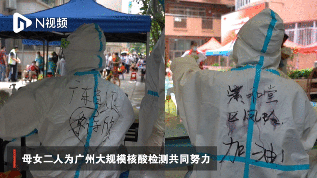 我们看到母女的并肩:退休3年的护士区凤玲,主动报名支援海珠区的社区核酸检测,女儿黎诗欣是她的同行,也报名“出征”,母女共同拼搏在抗疫一线。